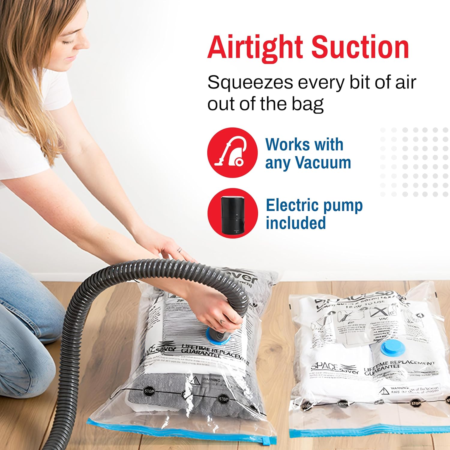 Includes fast electric pump Over-compressing may wrinkle clothes